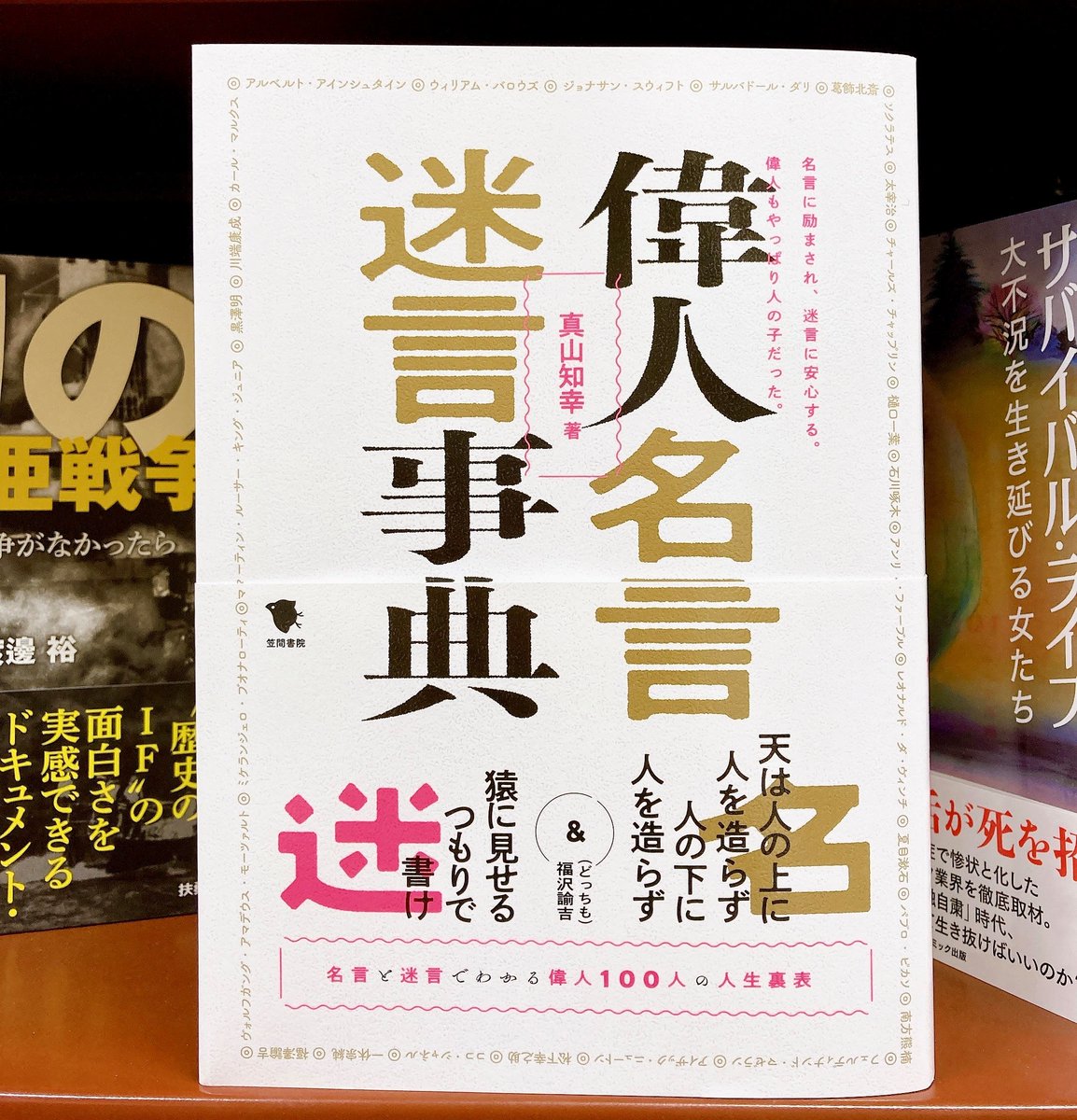 ジュンク堂書店 名古屋店 文芸書 真山知幸さん著 偉人名言迷言事典 古今東西の偉人100人の名言だけではなく 偉人らしからぬ 迷言 も取り上げて紹介した1冊 パブロ ピカソ 名言 天は人の上に人を造らず人の下に人を造らず と 迷言 猿に